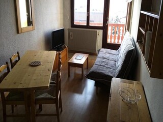 This apartment in Alpe d'Huez offers a comfortable and cozy retreat for families or small groups. The living room features a sofa bed, while the cabin area, with a door for privacy, has 2 single beds. It also includes a dining table with...