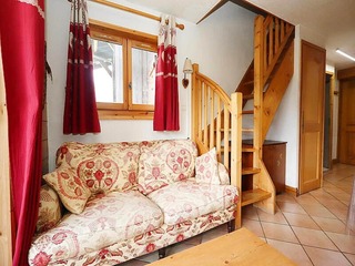 This charming 32m² apartment on the first floor offers a comfortable retreat for up to six guests. The sleeping arrangements include a cozy bedroom with a double bed, a mountain corner with two bunk beds, and a living room featuring a so...