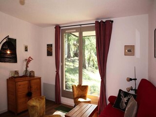 Surrounded by the serene beauty of a larch forest, this cozy ground-floor apartment offers a tranquil retreat just 300 meters from the vibrant resort center and a mere 100 meters from the slopes. Imagine waking up to the soft rustle of t...