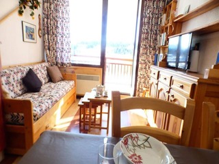 "Astragale 412 A", 1-room apartment 24 m2 on 1st floor. Beautiful furnishings: living/dining room with 1 pull-out bed (2 pers. 2 x 80 cm, length 190 cm), TV (flat screen). Sleeping alcove with 1 x 2 bunk beds (80 cm, length 190 cm). Kitc...