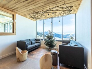 This 75m² luxury apartment in a 4-star residence accommodates up to 6 guests with two bedrooms, including a master with an en-suite, and a second bedroom with convertible beds. A mountain corner with bunk beds offers extra space. The apa...