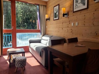 "Parc des Airelles", 2-room apartment 27 to 32 m2. Bright, beautiful furnishings: living/sleeping room with 3 sleeping facilities, dining table and TV can be hired. 1 room with 1 french bed. Open kitchen (dishwasher, 2 ceramic glass hob ...
