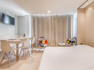 1-room studio 22 m2 on 15th floor, north facing position. Simple and beautiful furnishings: living/dining room with 1 double sofabed (140 cm, length 190 cm), 1 x 2 bunk beds (90 cm, length 190 cm), TV (flat screen). Small kitchenette (2 ...