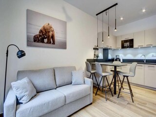 1-room studio 15 m2 on 6th floor. Renovated: living/dining room with 1 double sofabed (140 cm, length 200 cm), TV (flat screen). Kitchenette (dishwasher, 2 ceramic glass hob hotplates, toaster, kettle, microwave, electric coffee machine)...