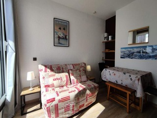 This bright studio, located in a building with an elevator, offers a cozy space for up to 4 people. The studio features a mountain area with 2 bunk beds and a living room with a 2-seater convertible sofa. It is equipped with a large HD T...