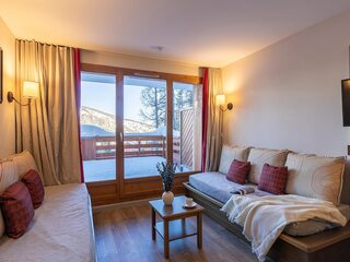 Studio in L'Albane with 1 living area, 1 sleeping alcove, 1 kitchenette, 1 bathroom and 1 toilet Studio details: Sleeps 4 Livingroom: 2 daybeds and 1 sleeping alcove with bunk beds (recommended for children) Kitchen: Equipped open-plan ...