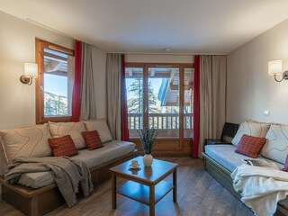 The apartment is on the second floor which means it has vaulted ceilings in the living /dining area and superb views from the large terrace. There is a jacuzzi on the balcony so you can enjoy an après ski dip and take in the stunning mou...