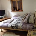 LIVING AREA: The extremely large sitting room is equipped with a huge cream leather corner sofa with adjustable back and incorporated chaise (comfortably seats 10). There is a 52 inch Samsung flat screen HD TV with Swisscom TV 2.0 which includes English freeview channels (and hundreds of German, French, Italian and other language channels) plus a recording and play-back facility and home cinema surround sound system with DVD and CD player for your enjoyment (with a library of DVDs). The log fire and Italian lighting creates a cosy and romantic feel. There is a Bose docking station for your i-pod and i-phone. The glass and chrome dining table with cream leather chairs provides comfortable and sophisticated seating for 8 people.