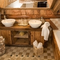 - Bedroom 5: Master bedroom in roof apex with Superking or twin 90x190 with ensuite bathroom with bath, double sinks, shower cabin and wc. Velux windows. A folding bed can be placed in this room to make it a triple.