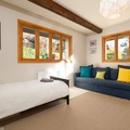 The other end of the corridor takes you to the three other bedrooms; two doubles and a twin room. The first of the doubles has its own en-suite shower room and french doors that open out onto the large balcony. The second double enjoys great views of the Chaine du Fiz mountains. Finally there's the twin room, with an en-suite shower room and another great view of the mountains. All bedrooms are fitted with plenty of storage so there's tons of room to hang all of your clothes.