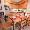 Spacious open-plan living area with kitchen, dining table for six and lounge with comfortable sofa and TV. Sliding patio doors lead out onto the balcony, which has seating from where you can appreciate the superb views of Mont Blanc.