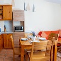 The spacious living room is furnished with high quality, stylish furniture, and sofas where you can relax after a long day skiing in the mountain. The apartment has an amazing view of the mountain.
