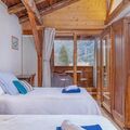 On the ground floor is the spacious living room, completely redesigned in 2023, with a comfy sitting area by the open fireplace; with a group friendly dining area including a large table for 10 people. Also relatively new, is the modern eat-in kitchen. Check out too the spacious sauna area with shower and loungers. As for sleeping then bedroom 1 offers 2 single beds (each 90 x 200 cm) with its own bathroom and separate WC. Then upstairs there are four further bedrooms: one bedroom with double bed (180 x 200 cm) and en-suite bathroom/separate WC. One bedroom with 2 single beds (each 90 x 200). Another bedroom with a double bed (200 x 200 cm), with its own en suite bathroom and separate WC. Then finally the fifth bedroom with two single beds (each 90 x 200 cm; entrance height 1.65 m; room height up to 2 m, with a sloping ceiling). There is a fourth bathroom with shower and a separate WC on this floor. There is also a comfortable lounge with TV located on this floor. You will find free public car parking approx. 100 m away; with vehicle access to within ~10m of the chalet. Offered on a self catered or catered half board basis to suit.