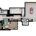 Leisure area: A large relaxation area including a swimming pool with adjustable floor to use the room as a yoga room, gym or to host a reception.