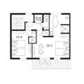 The 1st floor is shared between two bedrooms n °2 and n°3.