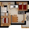 Situated in the Residence A of the Fermes de Meribel Village, Ferme A106 has a ski locker and access to the swimming pool, sauna and steam room of the main residence "Pierre & Vacances" on level -1.