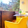 3-room apartment 70 m2, on the upper floor. Stylish and cosy furnishings: entrance hall. Living room with 1 double sofabed, satellite TV, video, hi-fi system and DVD. Exit to the balcony. 1 room with 2 beds. 1 double bedroom. Kitchen (4 hot plates, oven, dishwasher, toaster, kettle, microwave, freezer, electric coffee machine) with dining table. Bathroom, sep. WC. Balcony. Terrace furniture, box-room. Beautiful view of the mountains and the countryside. Facilities: Internet (WiFi, extra). Please note: non-smokers only. Smoke alarm. The apartment has been completely renovated! Very modern and very beautiful! 50628-000671-2020