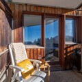Four treatment rooms including one double room with mountain view, exfoliation table, hot tub on outdoor terrace, multi-sensory shower, and relaxation room with wonderful view. (Fee applies)