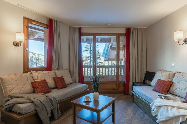 The L'Albane residence is located 200 m from the centre of Vars, a family-friendly resort in the Hautes Alpes. It is surrounded by a splendid larch forest in the La Forêt Blanche ski area, with its 180 km of pistes. The residence's character comes from its architecture. It offers fully functional, comfortable apartments with magnificent views of the forest and slopes. Its ideal location at the foot of the slopes allows you to step right into your skis at the resort's gates. The residence has an outdoor heated pool for relaxation after a day on the slopes. The resort's ski school is only 50 m away and can be accessed by ski, making this residence a favourite for family holidays.