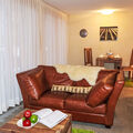 1-room apartment 39 m2, on the ground floor. Comfortable and luxurious furnishings: open living/sleeping room with 1 double bed, dining table, TV, radio, CD-player and DVD. Exit to the terrace. Open kitchen (oven, dishwasher, 4 induction hot plates, toaster, kettle, freezer, electric coffee machine, Capsules for coffee machine (Nespresso) extra, fondue Set (cheese)). Bath/WC, hydro massage bath. Small terrace. Terrace furniture. Facilities: safe, hair dryer. Internet (WiFi, free). Please note: non-smokers only.