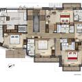 Sleeping area with 5 en-suite bedrooms.