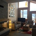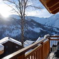 Direct access to a large balcony with a stunning panoramic view of the mountains. The terrace is equipped with garden furniture.