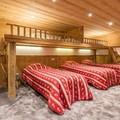As for the bedding, we have 3 double bedrooms, one en suite, then either 2 double beds or 4 single beds en suite in the 4th bedroom. The 5th bedroom can sleep 5 in 3 single beds with 2 bunk beds above, en suite, with the 4th bathroom serving as a house bathroom. If driving here there are 4 parking spaces allotted and there is a ski and boot room with a ski boot dryer. The chalet also offers complimentary WiFi and if you have any young children a high chair and cot are available on request. Offered either self catered or on a catered half board basis if we have a chef available.