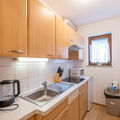 "Alpenchalets", 2-room apartment 50 m2, on the ground floor. Renovated in 2019, cosy furnishings: living/sleeping room with 1 double sofabed, dining table and cable TV. Exit to the terrace. 1 room with 1 double bed (160 cm). Kitchen (dishwasher, 4 ceramic glass hob hotplates, toaster, kettle, microwave, electric coffee machine). Shower/WC. Electric heating. Parquet floors. Terrace. Terrace furniture. Facilities: children's high chair, baby cot. Internet (WiFi, free). Parking (1 car). 1 pet/ dog allowed. 50628-001024-2020