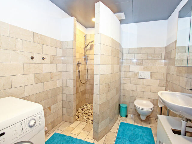 2-room apartment 55 m2, on the lower ground floor. Cosy furnishings: 1 large room with 1 sofabed, 1 double bed and satellite TV (flat screen). Living/sleeping room with 1 double sofabed and satellite TV (flat screen). Large, open kitchen (oven, dishwasher, 4 ceramic glass hob hotplates, microwave, electric coffee machine). Exit to the terrace. Shower/WC. Underfloor heating. Small terrace. Terrace furniture. Facilities: washing machine. Internet (WiFi, free). Please note: suitable for families. Private entrance, smoke alarm.