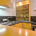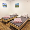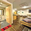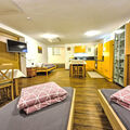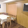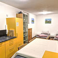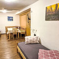 "Opal", 2-room studio 45 m2, on the lower ground floor. Practical and beautiful furnishings: living/sleeping room with 1 double bed and shower/WC. Kitchen-/living room (dishwasher, 4 ceramic glass hob hotplates, kettle, microwave, electric coffee machine) with dining table, 3 beds and cable TV. Sep. WC. Underfloor heating. No view. Facilities: Internet (WiFi, free). Please note: one double bedroom is outside the apartment. Non-smokers only. Smoke alarm. All rooms have basement windows (no view).