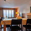 "Chaedoz 24-1", 2-room apartment 70 m2 on 2nd floor. Object suitable for 2 adults + 2 children. Spacious, comfortable and modern furnishings: living/dining room with open-hearth fireplace (only for decoration), cable TV and DVD. 1 room with 1 french bed (160 cm, length 200 cm). Exit to the balcony, east facing position. Alcove with 1 x 2 bunk beds (70 cm, length 180 cm). Open kitchen (oven, dishwasher, 4 ceramic glass hob hotplates, toaster, kettle, electric coffee machine, raclette grill, fondue Set (chinoise, cheese)). Exit to the balcony, west facing position. Bath/WC. Balcony, west facing position balcony, east facing position. Balcony furniture. Beautiful panoramic view of the mountains. Facilities: children's high chair, baby cot, hair dryer. Internet (WiFi, free). Parking (roofed). Please note: non-smokers only. Instead of an enclosed bedroom, some sleeping areas are located in an open-plan area (gallery, alcove, etc.).