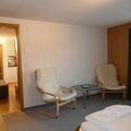 2-room apartment 45 m2, on the ground floor, south facing position. Partly renovated in 2022, cosy furnishings: living/dining room with international TV channels and radio. Exit to the patio, south facing position. 1 room with 2 beds (90 cm, length 200 cm). Open kitchen (oven, 4 ceramic glass hob hotplates, microwave, electric coffee machine, raclette grill, fondue Set (cheese)). Shower/WC. Underfloor heating. Parquet floors, carpet. Patio 70 m2, south facing position and west facing position. Terrace furniture, deck chairs (2), box-room. Marvellous view of the mountains and Eiger. Facilities: hair dryer. Internet (WiFi, free). Garage at the house. Please note: non-smokers only. Private entrance, fire extinguisher.