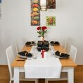 3-room apartment 82 m2 on 3rd floor, south-west facing position. Bright, comfortable and cosy furnishings: living/dining room with dining nook, TV, hi-fi system and DVD. Exit to the balcony, south facing position and west facing position. 1 double bedroom with 2 beds (90 cm, length 200 cm). 1 double bedroom with 1 double bed (140 cm, length 200 cm). Open kitchen (oven, dishwasher, 4 ceramic glass hob hotplates, toaster, kettle, freezer, electric coffee machine, raclette grill, combination microwave, fondue Set (chinoise, cheese)). Bath/WC. Balcony, south facing position and west facing position. Balcony furniture. Very beautiful view of the Matterhorn. Facilities: hair dryer. Internet (WiFi, free). Please note: non-smokers only.