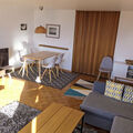 "Eden Roc 29", 2-room apartment 60 m2 on 5th floor. Bright, comfortable and beautiful furnishings: living/dining room with 1 sofabed (140 cm, length 200 cm), cable TV, radio, CD-player and DVD. Exit to the balcony. 1 room with 1 french bed (160 cm, length 200 cm). Kitchen (3 hot plates, oven, dishwasher, toaster, kettle, microwave, electric coffee machine, Capsules for coffee machine (Nespresso) extra, fondue Set (cheese)). Bath/bidet/WC, sep. WC. South facing position. Balcony furniture, deck chairs (2). Panoramic view of the mountains and the countryside. Facilities: washing machine, iron, hair dryer. Internet (WiFi, free). Please note: non-smokers only.