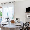"Castel des roches A36", 1-room studio 20 m2 on 3rd floor. Living/dining room with 1 sofabed (140 cm, length 190 cm), dining table and TV (flat screen). Exit to the balcony. Alcove with 1 x 2 bunk beds (80 cm, length 190 cm). Open kitchen (4 ceramic glass hob hotplates, toaster, kettle, electric coffee machine, combination microwave). Bath/WC. Heating. Small balcony 3 m2, south-west facing position. View of the mountains. Facilities: washing machine. Internet (WiFi, extra). Parking (1 car). Please note: TV only FR. Smoke alarm. Instead of an enclosed bedroom, some sleeping areas are located in an open-plan area (gallery, alcove, etc.). Offer by a private individual according to Art. 155, IV of CGI.