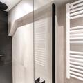 Bathroom 1: Shower, Towel dryer, and Single sink