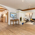 The well-maintained chalet is a beautiful combination of modern with lots of light, supplemented with Austrian charm. All eight bedrooms have their own ensuite bathroom with shower or bath, toilet, sink, hair dryer and flat screen TV. The living and dining room has a cozy sitting area with comfortable sofas, a fireplace, flat screen TV, fully automatic freshly ground bean coffee machine with cappuccino, espresso, latte macchiato, café au lait and at breakfast you have a view of the slopes. Put your skis and boots in the heated ski storage room with ski boot dryer/heater. There is parking for 7/8 cars at the chalet. There are also various free car parks elsewhere in the village. The chalet staff stay in a separate apartment within the chalet, so you have complete privacy.
