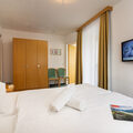 - Double room with two single beds, bath/shower, toilet, washbasin, hotel hair dryer, flat screen TV, balcony