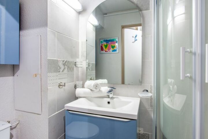 1-room studio 20 m2 on 2 levels on 3rd floor, east facing position. Modern furnishings: living/dining room with 1 double sofabed (140 cm, length 190 cm), TV (flat screen). Exit to the balcony. Gallery with sloping ceilings with 1 double bed (140 cm, length 190 cm). Small kitchen (2 ceramic glass hob hotplates, toaster, kettle, electric coffee machine). Shower/WC. Balcony, east facing position. Please note: non-smokers only. 1 small pet/ dog allowed. Smoke alarm. Instead of an enclosed bedroom, some sleeping areas are located in an open-plan area (gallery, alcove, etc.). Offer by a private individual according to Art. 155, IV of CGI.