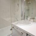 Bathroom 1: Bathtub, Washing machine, Towel dryer, and Single hand basin