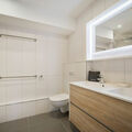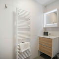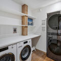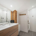 Bathroom 1: Double hand basin, Shower, and Towel dryer