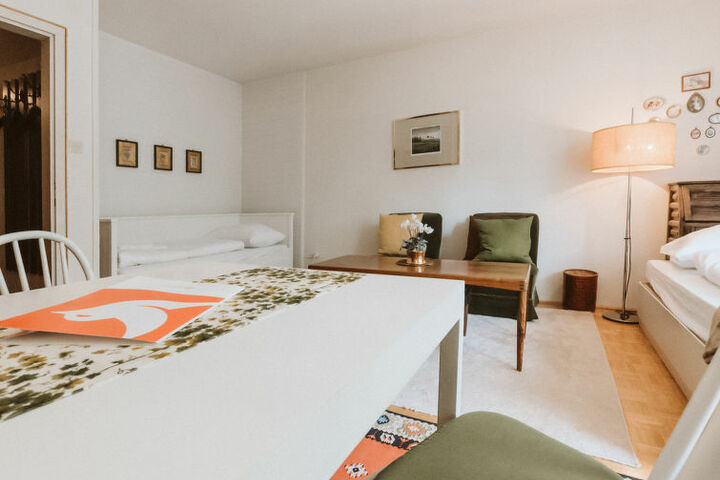 "Wagner Top 32", 1-room studio 30 m2 on 3rd floor. Object suitable for 2 adults. Very cosy furnishings: entrance hall. Living/sleeping room with 2 beds, dining table and cable TV (flat screen). Exit to the balcony. Small kitchen (2 hot plates, mini-oven, oven, kettle, electric coffee machine). Shower/WC. Parquet floors. Balcony 6 m2. Beautiful view of the mountains. Please note: non-smokers only. Smoke alarm. 50403-000485-2023
