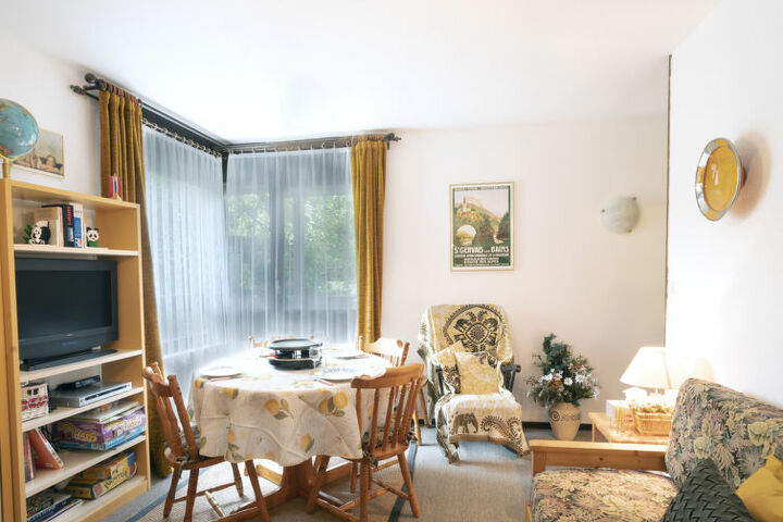 Saint-Gervais: Residence "Castel des Roches", 7 storeys. 7.7 km from the skiing area. In the house: lift, storage room for skis, central heating system. In Winter: please take snow chains. Parking (limited number of spaces). Grocery, restaurant 200 m, bakery 100 m, bus stop "Avenue du Mont d'Arbois" 250 m, railway station "Saint Gervais- Le Fayet" 5.4 km, outdoor swimming pool 800 m, thermal baths "Thermes de Saint Gervais" 5.9 km. Tennis, minigolf 800 m, gondola lift 500 m, ski bus stop 100 m, ice rink 250 m. Well-known ski regions can easily be reached: Evasion Mont Blanc. Please note: ski bus (free of charge).