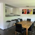 4-room apartment 113 m2 on 2 levels, on the ground floor, south facing position. Modern and cosy furnishings: living/dining room with cable TV (flat screen), radio, CD-player and DVD. Exit to the balcony, south facing position and west facing position. 1 room with 1 french bed (160 cm, length 200 cm). Open kitchen (oven, dishwasher, 4 ceramic glass hob hotplates, toaster, kettle, microwave, electric coffee machine, Capsules for coffee machine (Nespresso) extra, raclette grill, fondue Set (cheese)). Shower/WC. Floor heating. On the lower ground floor: 1 room with 2 beds (90 cm, length 200 cm). Exit to the terrace, south facing position and west facing position. 1 room with 1 french bed (160 cm, length 200 cm). Exit to the terrace, south facing position and west facing position. Bath/WC. Parquet floors, natural stone floors. Balcony, south facing position and west facing position, south facing position and west facing position, lawn. Balcony furniture. Marvellous view of the mountains and Eiger. Facilities: washing machine, dryer, hair dryer. Internet (WiFi, free). Parking space n 7 Bedford (roofed, 1 car) at the house. Please note: non-smokers only. Fire extinguisher.