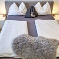 "Tobias 1", 2-room apartment 40 m2 on 1st floor. Cosy furnishings: living/sleeping room with 1 double sofabed, dining table, satellite TV and radio. 1 double bedroom. Open kitchen (oven, dishwasher, 4 ceramic glass hob hotplates, toaster, kettle, microwave, electric coffee machine). Shower/WC. Heating. Deck chairs. Facilities: children's high chair, baby cot. Internet (WiFi, free). Please note: non-smokers only. 1 pet/ dog allowed. Private entrance. Only bookable for holiday stays. When there are less than the maximum number of guests staying at the property, not all of the housing units will be available for use. 50417-000437-2020