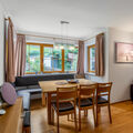 5-room chalet 135 m2 on 2 levels. Spacious and bright, very tasteful furnishings: entrance hall. Living/dining room with 1 sofabed and cable TV (flat screen). Exit to the garden. 1 room with 1 x 2 bunk beds. Kitchen-/living room (4 hot plates, oven, toaster, freezer, electric coffee machine) with dining table. Shower/WC. Upper floor: 1 double bedroom with 1 double bed, bathroom and separate WC. 1 double bedroom with 1 double bed. Exit to the balcony. 1 room with 2 beds. Exit to the balcony. Bath/shower/WC with corner bath. Parquet floors. Large garden. Terrace furniture, barbecue (portable). Very beautiful view of the mountains and the garden. Facilities: washing machine, dryer, iron. Internet (WiFi). Parking. Please note: suitable for families. Non-smoking house. Smoke alarm. 50403-000386-2020