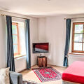 5-room house 150 m2 on 3 levels. Tasteful and cosy furnishings: large living/sleeping room with 1 double bed and cable TV (flat screen), tiled stove. Open dining room. 1 double bedroom. Kitchen (oven, dishwasher, 4 ceramic glass hob hotplates, microwave, electric coffee machine) with dining nook. Exit to the terrace. Bathroom, sep. WC, double hand-basin. On the lower ground floor: entrance hall. Bath/WC. Top floor: 1 double bedroom with 1 double bed and shower/WC. 1 room with sloping ceilings with 1 double sofabed (1 x 140 cm, length 200 cm), 1 double bed. Large terrace, garden. Very beautiful view of the mountains and the ski run. Facilities: washing machine, dryer, safe, iron, hair dryer. Internet (WiFi, free). Please note: smoke alarm. First stack of firewood included, each further delivery extra. 50628-000385-2020