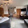 "Rehkitz", 1-room studio 28 m2, on the ground floor. Object suitable for 2 adults + 1 child. Modern and tasteful furnishings: Studio with 1 sofabed, 1 double bed, dining table, cable TV and flat screen. Exit to the terrace. Kitchenette (oven, dishwasher, 4 ceramic glass hob hotplates, toaster, kettle, electric coffee machine). Shower/WC. Wooden floors, natural stone floors. Terrace 6 m2. Terrace furniture. Facilities: Internet (WiFi). Parking at the house. Please note: non-smokers only. 50606-007660-2025
