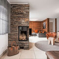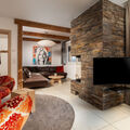 "Mountain Resort C15", 4-room apartment 102 m2 on 1st floor. Object suitable for 6 adults + 2 children. Spacious and bright, comfortable and tasteful furnishings: open large living room with panoramic window with open-hearth fireplace, cable TV, flat screen and radio. Exit to the balcony. 1 double bedroom with shower/WC, cable TV and flat screen. 1 double bedroom with shower/WC, cable TV and flat screen. 1 room with 1 x 2 bunk beds (180 cm, length 200 cm), cable TV and flat screen. Large, open kitchen (oven, dishwasher, 4 ceramic glass hob hotplates, toaster, kettle, electric coffee machine, Capsules for coffee machine (Nespresso 80 Stk) free) with dining nook. Natural stone floors. Balcony furniture, deck chairs (2). Facilities: Internet (WiFi). Please note: non-smokers only. Smoke alarm, fire extinguisher. This apartment has 2 bathrooms, either separately or accessible from one bedroom. 50606-007508-2023
