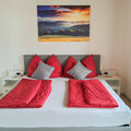 3-room house 90 m2 on 2 levels. Spacious and bright, cosy furnishings: entrance hall. Living/sleeping room with 1 double sofabed, cable TV and flat screen. Kitchen (oven, dishwasher, 4 ceramic glass hob hotplates, toaster, kettle, microwave, freezer, electric coffee machine) with dining nook and TV. Bathroom, shower, sep. WC. Upper floor: 1 double bedroom with satellite TV. 1 room with 1 bed and 1 double bed. Sep. WC. Wooden floors. Balcony 4 m2, large terrace 25 m2. Terrace furniture. Beautiful view of the countryside. Facilities: safe, baby cot for up to 2 year olds, hair dryer. Internet (WiFi, free). Please note: non-smokers only. Maximum 1 pet/ dog allowed. Smoke alarm, fire extinguisher. 50619-006039-2021